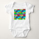 Este traje de bebé tiene el diseño de una escuela de peces en el océano con nado verde, azul, naranja, amarillo, rojo, rosa y azul-verde. Cambie el texto o quítelo completamente si lo desea.