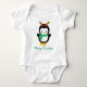 Un adorable traje de bebé, este diseño muestra un pingüino adorable de Navidades con "Feliz Navidad" escrito bajo una hermosa letra cursiva verde. Ideal para eventos de vacaciones, pide el tuyo hoy mismo! gráficos de Prettygrafik Design (https://www.etsy.com/shop/Prettygrafikdesign)
