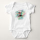 Adorable brujita caminando con su mejor vestido y bolso de Halloween. Su traje es negro con lunares rosa pálido, encaje volado y lazos. Personalízalo en la parte inferior con la plantilla fácil de usar proporcionada. El fondo es acuarela rosa. Este precioso body es perfecto para que tu pequeña lo use toda la temporada.