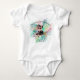Adorable brujita caminando con su vestido y bolso de Halloween más finos. Su atuendo es negro con lunares rosa pálido, encaje volado y lazos. Personalízalo en la parte inferior con la plantilla fácil de usar proporcionada. El fondo es acuarelas rosadas. Este precioso body es perfecto para que tu pequeño lo use toda la temporada.