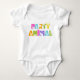 Celebra la aventura salvaje de tu pequeña con nuestro traje de bebé blanco de la fiesta de cumpleaños número uno, Safari animal. Esta adorable camisa de primer cumpleaños es el regalo perfecto, con un colorido texto de neón "Animal Fiesta" en el frente junto con juguetones animales fiestas en la parte posterior. Personalizar con el nombre de su hijo en la parte posterior, creando un equipo memorable y encantador para su día especial.