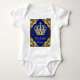 Camisetas de bebé príncipe con hermoso azul real y corona de joya dorada en un fondo de remolino azul real y dorado. Puedes agregar el texto que desees para personalizar esta adorable camiseta de bebé príncipe. También hay una corona en la parte posterior donde puedes agregar texto, o puedes eliminarla si lo prefieres.