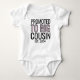 Este diseño en particular presenta un lindo dicho impreso en la parte delantera que dice "Promocionado a un primo grande". Es probable que el texto esté en un tipo de letra lúdico y infantil que se suma a la naturaleza alegre y desenfadada del mensaje. La frase "Promovido a un primo mayor" sugiere que el bebé tiene un nuevo miembro de la familia, un primo más joven, y celebra la emoción y responsabilidad de ese nuevo rol. Es probable que el diseño resulte atractivo para los padres o cuidadores que tienen una familia en expansión y que desean reconocer los importantes hitos y transiciones que se producen como resultado. El mensaje es divertido y entrañable, destacando el vínculo especial entre primos y la alegría que conlleva dar la bienvenida a un nuevo miembro a la familia.