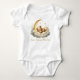 Traje de cuerpo de bebé adorable con un osito durmiendo en una nube blanca con luna creciente dorada. Personaliza con tu frase favorita o el nombre del bebé.