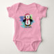 ¡Este es un lindo diseño de invierno para un bebé o un niño pequeño! Se trata de una imagen de un adorable pingüino vestido con una bufanda rosa y marrón y un sombrero de Santa, que se monta en una correa. Detrás de la imagen del pingüino se esconde un colorido diseño de salpicaduras abstractas en azul, agua y verde cal. ¡Brillante y divertido!