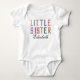 Celebra la alegría de la hermandad con nuestro adorable Bodysuit de bebé que presenta la encantadora frase "Hermana menor" personalizada con un nombre personalizado. El diseño conmovedor se complementa con encantadoras fuentes de color pastel retro en el centro, creando un conjunto encantador y elegante para hermanos. Elaborado con suavidad y comodidad en mente, este conjunto de hermana a juego es perfecto para capturar momentos preciosos y fomentar un fuerte vínculo entre hermanas. Deja que tus pequeños giren con estilo con este bodysuit dulce y personalizado, una adición perfecta a su guardarropa que expresa hermosamente el amor entre hermanas.