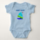 Elegante bebé de un enterizo, con vistosos esténciles como los gráficos de un velero. El texto en negrita azul dice Chief Mate, y se puede personalizar para leer lo que se quiere. La idea de regalo de un niño pequeño.