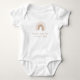Este bodysuit de anuncio de embarazo arcoíris boho de la colección Rowan es perfecto para una sencilla fiesta de bebé y para fotos de anuncio de bebé. Este diseño minimalista lindo presenta un arcoíris único neutral de color rosa claro y dorado y es perfecto para la primavera o el verano.