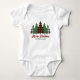 Este personalizado y rústico traje de bebé para bebés de vacaciones presenta modernos árboles de felpa roja y verdes árboles de Navidad encima de tu mensaje Feliz Navidad. Un bonito look personalizado y tradicional que se renueva en la actualidad, este conjunto festivo para bebés es perfecto para una reunión familiar. Diseño clásico y nostálgico.