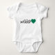 Este pelele de bebé presenta la frase "Salvaje de corazón" transmitida por la palabra "salvaje" seguida del símbolo arroba y un corazón verde kelly.