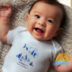 Diseño adorable para celebrar la primera Navidad de tu bebé. Con un divertido diseño de Santa Claus en su trineo sobre el Polo Norte en tonos azules, el "¡Ja, ja, ja!" encima de Santa y debajo, el espacio para el nombre de tu bebé. Es un diseño diferente, que hará que tu pequeño se vea único.