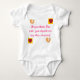 Un onesy con 2 diversos tipos de corazones coloridos en cada esquina del mensaje y del texto que lee, "si usted piensa que soy lindo, usted debo abeja mi paso-mamá!"