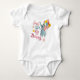 Adorable cartoon of a fluffy blue baby elephant in a party hat holding colorful balloons, with "Small Size Big Dreams" text in pink and blue. Fun, embroidered-style design perfect for Zazzle apparel and gifts