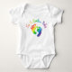 Soy un bebé que la enredadera es una suavidad, del arco iris mono 100% del algodón diseñado especialmente para anunciar y celebrar el nacimiento de un bebé del arco iris nacido después de un aborto involuntario o de una pérdida del niño. La enredadera del niño ofrece un par de huellas adorables, arco iris-coloreadas del bebé con los dedos gordos en forma de corazón por debajo el texto multicolor que dice que "soy un bebé del arco iris." ¡Este mono miraría adorable usado en una sesión fotográfica recién nacida para anunciar a un nuevo bebé del arco iris!
