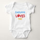 Un lindo, divertido y colorido diseño de texto en camisetas, trajes para el cuerpo, camisetas de raglan, gorras, vestidos sin mangas, camisetas y vestidos de rufa, trajes para el cuerpo orgánicos, sudaderas, capuchas de pullover, camisetas oscuras y otras prendas de vestir que dicen Todos Me aman con texto de azul, rojo y oro.
