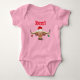 ¡Personaliza este Bodysuit de una pieza para bebé niña de Navidad! Cuenta con un divertido toro Longhorn con sombrero de Navidad y adornos rojos y verdes en sus cuernos.