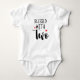 Traje de bebé Bendecido Con Dos Gemelos. Tipografía con corazones rojos. Vea el segundo traje de bebé que dice oró por uno.
