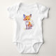 Un traje de bebé muy lindo con el ilustracion de un zorro bebé sonriente.