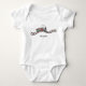 Un traje de bebé con un ilustracion de juguetes artesanales de madera: un tren sonriente de madera que recorre una pista sinuosa y un texto de personalizable, como el nombre - ¡un buen regalo para un recién nacido!