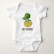Traje de bebé lindo con un ilustracion de un adorable cocodrilo que eclipsa de su huevo. Ideal para los amantes de los cocodrilos y los caimanes. Ilustrado y diseñado por Patricia Álvarez.