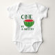 Un traje de bebé con un diseño de personalizado One in a Melon. Cuenta con una sonrisa, sandía, dibujo de frutas personalizados y palabras verdes.