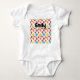 Este traje de bebé tiene un diseño moderno de mediados de siglo de flores hechas de cuadrados, óvalos y diamantes que han sido manipulados para formar flores.