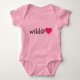 Este enterizo presenta la frase "Salvaje en el corazón" transmitida por la palabra "salvaje" seguida por el letrero y un corazón rosado caliente.