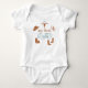 Este saltador de una pieza para bebé presenta gráficos modernos con temática de rodeo de terracota y una combinación de tipografía con temática de vaquero azul y naranja quemada. Este traje de bebé de una pieza es el conjunto perfecto para tu primera fiesta de cumpleaños con temática rodeo.