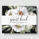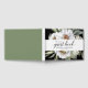 Este libro botánico blanco cuenta con flores blancas con hojas verdes de oliva en el frente sobre un fondo negro. El texto dice "libro de Bodas" e incluye el nombre de la novia y del novio y la fecha del boda en la parte delantera y "el boda de (nombre de la novia y del novio) y la fecha en la columna vertebral. El texto se puede personalizar para adaptarlo a sus necesidades.