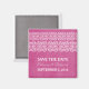 Elegante y sofisticado Bohemian Moderno Save the Date Magnet con un único borde giratorio y un fondo de papel vintage en magenta. Este imán elegante es perfecto para anunciar a su boda de temática asiática o bohemia. Fácil de personalizar, simplemente agregue los detalles de su boda en los campos de texto proporcionados. Haga clic en "Personalizar" para encontrar más opciones de personalización.