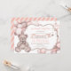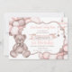 Esta invitación es para que un bebé tenga un cumpleaños. Los colores son el coral y el agua marrón pastel. Este diseño viene con otras opciones
