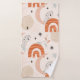 Un divertido patrón de arco iris boho con arte de líneas, lunas de tono neutro, planetas y estrellas. Un diseño moderno que añade emoción a tu baño.