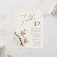 Presentamos nuestra impresionante flor silvestre de otoño | gráfico de números de tabla beige, que abarca un diseño sencillo y moderno que refleja la belleza de la naturaleza. Con flores de acuarela de otoño prensado y hojas de terracota, captura la esencia de los tonos naranjas quemados en octubre, creando un diseño minimalista y clásico que exuda calidez y encanto. El diseño tiene un toque de elegancia que inspira un delicado ambiente vintage, donde las hojas de color verde salvia, los acentos de cobre oxidados y los tonos de tierra floral crean un estilo único e inolvidable. Disfrute de la belleza de su día especial con un producto que capta un diseño mínimo pero único y que le permitirá disfrutar de una experiencia boda verdaderamente memorable. Contáctenos con cualquier pregunta sobre el diseño, y le ayudaremos a hacer el boda de sus sueños.