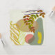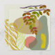 Diseño de boho botánico con colores magenta, verde, amarillo y marrón y elementos florales.