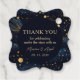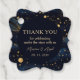 Añade un toque final de ensueño a tus favores matrimoniales con esta etiqueta de gracias celestial. Con un lujoso cielo de noche naval, brillantes estrellas de oro y un guión elegante, esta etiqueta agradece a sus invitados por celebrar bajo las estrellas. Perfecto para bodas celestes, bohos y estrellados, e ideal para favores, regalos o bolsos de bienvenida. Ideal para favores de boda, bolsos de bienvenida o regalos de agradecimiento para un tema de boda estrellado.