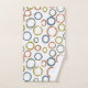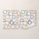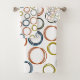 Este juego de toallas tiene un diseño Boho de círculos superpuestos en tonos retro de verde, marrón, azul y gris.