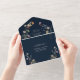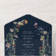 Invitación a la boda de Boho Floral All-in-One de la Marina. Esta elegante y elegante invitación a la boda se caracteriza por unas magníficas flores naturales pintadas a mano y adornadas con flores de agua como flores y un ramo de flores que son perfectas para bodas de primavera, verano o otoño. Encontrar elementos coincidentes en la colección de Bodas Navy Boho Wildflower.