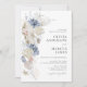 Boho Rústico Elegante En La Playa Dusty Blue Simple Wedding Invitation. El estilo bohemio de las conchas de la costa invita a la minimalista invitación con elegantes y sobrias cáscaras de color azul y crema y corales en acuarela impresa a mano. El color de fondo azul polvoriento es magnífico para los bodas bohos y las bodas en la playa. Invitaciones editables para primavera, verano, otoño (otoño) y bodas de invierno.