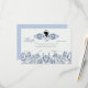 Tarjeta de boda elegante de jardín Bridgerton en azul polvo con caligrafía elegante y blanca. Caligrafía elegante y sofisticada.