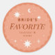 Este pegatina favorecedor forma parte de una colección de lunas y estrellas celestes, palmeras y patrones de boho para cualquier boda de verano boho con un ambiente de Palm Springs. Esto sería perfecto para añadir a una bolsa de caramelos o un favor de una botella de bebida con el sabor favorito de la novia o novios. También puede cambiar el texto para que sea "el favorito de la novia" o simplemente "nuestro favorito" y la última línea se puede usar para enumerar el sabor, la fecha o un breve mensaje de agradecimiento.