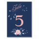 Rubor y azul, boho, tarjetas de número de mesa floral, con detalles florales bohemios en ambos lados y monogramas en el lado posterior. Al hacer los números, cambie el número y añada las tarjetas a su carrito de compras 1 por 1. Este diseño forma parte de mi conjunto de bodas florales de boho azul y de color azul.
