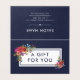 Tarjeta de regalo azul marino para tu peluquería, salón de uñas, o para un artista de maquillaje, un artista excéntrico o similar. El certificado de regalo es azul marino con ramos de flores bohemias en naranja, rojo coral y rosa caliente. Añade tu información de contacto en la parte posterior del certificado de regalo. En el interior puede escribir un descargo de responsabilidad o restricciones de la tarjeta de regalo.