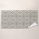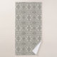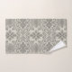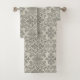 This bath towel set features a pattern of floral damask hand-drawn line art in black on beige for a boho look.