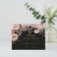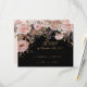 (DISEÑO PERSONALIZADO). Tarjeta de respuesta RSVP floral negro boho rosa dorado para nuestro conjunto de invitaciones completo. RSVP incluye espacio para sus opciones de menú. Paleta de colores moderna y trendy de tonos cálidos terrosos de canela, rosa, rubor, rosa dorado, ámbar, gris y carbón. Flores y follaje acuarela sueltos y pictóricos pintados por la artista y diseñadora internacionalmente licenciada, Audrey Jeanne Roberts, Copyright.