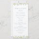 Delight in the rustic allure of watercolor wedding menu cards, adorned with exquisite light blue wildflower blooms and lush greenery leaves, enhanced by delicate calligraphy text. Elevate your wedding dining experience with this charming touch.