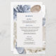 Añade un toque de encanto costero a tu recepción con estas suaves sábanas azules y neutras del menú de bodas de la playa. Con conchas y corales pintados a mano en acuarelas, estos menús de doble cara son perfectos para bodas frente al mar, frente a la playa, junto a la playa, el complejo turístico y el destino. Personalízelas fácil y rápidamente, simplemente pulse el botón Editar usando la herramienta de diseño para reorganizar y dar formato al estilo y la ubicación del texto. Ligeros y asequibles, hacen un hermoso y práctico agregado a tu papelería de bodas de playa —elegante, personalizable y fácil de igualar con la colección completa. c) El estudio Happy Cat Studio