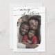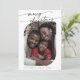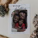 La Moda Boho Black White Photo Cute la tarjeta navideña Merry. El moderno diseño bohemio blanco y negro presenta una caligrafía rústica sencilla con un estilo único y clásico. Personaliza la parte delantera de las tarjetas de Navidades con el año, el nombre de tu familia y una foto. Incluya un mensaje de saludo de vacaciones personalizado en la parte posterior.
