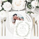 Moda y sofisticada, esta invitación a la foto de Save the Date captura la esencia de un boda boho con su elegante diseño rústico botánico. Con exuberantes hojas de vegetación y delicadas flores blancas, esta invitación da el tono perfecto para una celebración de bodas al aire libre, jardín o inspirada en la naturaleza.