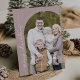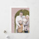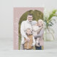 Boho Moda Rosa Pink Photo Modern Merry tarjeta navideña. El diseño bohemiano moderno de color rosa ocre y rosa neutro presenta una caligrafía rústica sencilla con un estilo único y clásico. Personaliza la parte delantera de las tarjetas de Navidades con el año, el nombre de tu familia y una foto. Incluya un mensaje de saludo de vacaciones personalizado en la parte posterior.