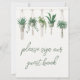 Presentamos nuestro exclusivo cartel de libro de visitas, una impresionante mezcla de sofisticación y elegancia inspirada en la naturaleza. Este cartel muestra un delicado ilustracion acuático de una planta colgante, artísticamente suspendido en una moda de percha de macramé. El diseño, de diseño y estilizado, desprende una sensación de sofisticación, lo que lo convierte en la adición perfecta a cualquier evento moderno y elegante. Los tonos verdes suaves de la planta, junto con la tipografía refinada, crean una estética de moda sin esfuerzo, intemporal y contemporánea.